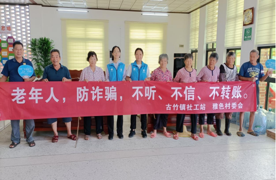 古竹鎮(zhèn)社工站聯(lián)合雅色村村委會組織開展“老年人,防詐騙,不聽、不信、不轉(zhuǎn)賬”為主題的防范養(yǎng)老詐騙宣傳活動